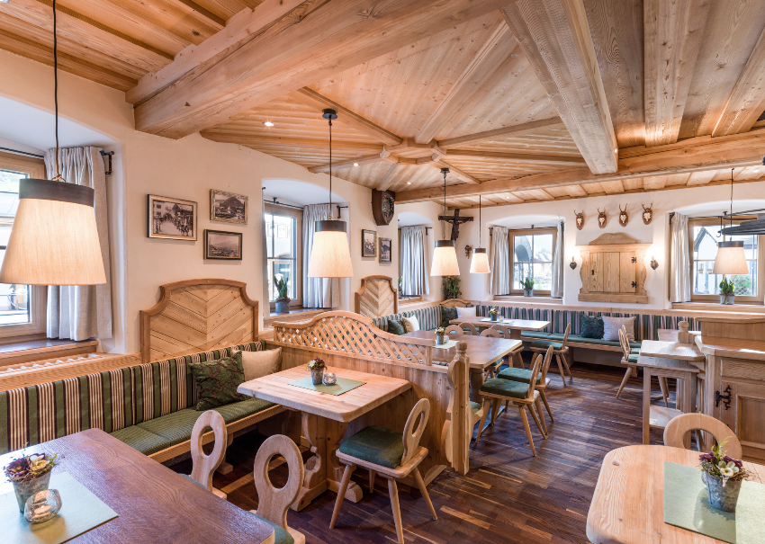 Retaining its old vaulted ceiling reception area, the hotel offers a welcoming reception with luggage storage, dining room, cosy bar and traditional Tyrolean ‘Stuberl’. A new lift serves all floors and there is a ski and boot room and free parking. Free WiFi throughout.
