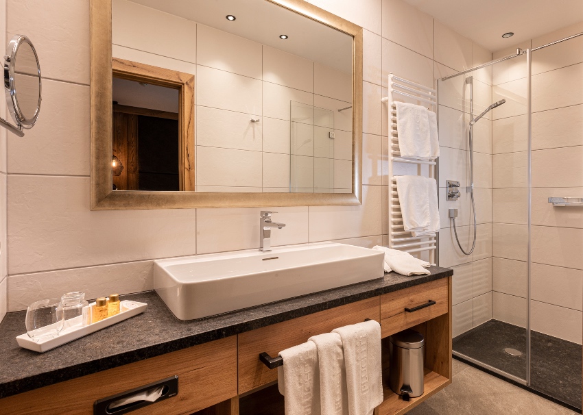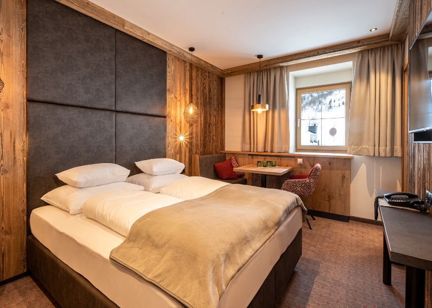 All rooms have a mountain view, a modern alpine style (renovated 2020) and are traditionally furnished with reclaimed timber and natural materials. Rooms are en-suite with bath/shower, WC, telephone, TV, free WiFi, hairdryer, safe, most with balcony. Bathrobes and slippers provided.