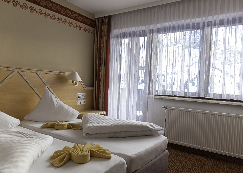 All rooms are traditionally furnished in a classic style and are ensuite with TV, safe, hairdryer, free WiFi, bathrobes and slippers. Classic Double bedrooms are around 30m2 with mountain views on the north or south, mostly without balcony. Larger Classic Family ‘Familiennest’ rooms (38m2) have a double bed and double sofa-bed with balcony on the south side.
